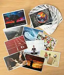 Ergänzt werden kann das Gespräch über das gewählte Bild durch anregende Coachingfragen auf der Rückseite. In verschiedenen Settings, sei es eine Klassenleiterstunde in der Schule oder eine sozialarbeiterische Einzelberatung, kann mit Hilfe dieser Karten ein Gespräch eröffnet und ein Raum für Assoziationen und Austausch geschaffen werden.