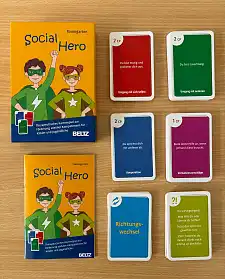 Durchführung: Je nach Anzahl der Spielerinnen und Spieler muss eine bestimmte Menge an »Checker-Punkten« (CP) von den vier Kategorien (»Umgang mit sich selbst«, »Umgang mit anderen«, »Kooperation« und »Verhaltensvorschläge«) erreicht werden, um sie ablegen zu können (bei 2 Personen jeweils mindestens 12 Checker-Punkte, bei 3 oder 4 Personen jeweils mindestens 10 Checker-Punkte). Da niemals genug soziale Kompetenzen erworben werden können, können immer auch mehr Punkte abgelegt werden, als die Zahl auf der Übersichtskarte verlangt. Wer als Erstes genug Kompetenzen gesammelt hat, um alle Kategorien ablegen zu können, hat gewonnen und ist somit der »Social Hero« der Runde.